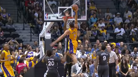 Roy Hibbert is on the receiving end of some undeserved hate by Laker fans due to unrealistic expectations. The knock is on his rim protecting and offensive production. However Roy is not featured in this offense, a surpising thought considering Byron’s inside-out approach. So he cannot score a whole lot if he averages 5 shots a game. Defensively, if your perimeter defense is getting broken down, Roy will rotate to block the shot. If your team will not rotate to help the helper, you either have a rebound dunk or a pass to the man Hibbert had to leave to make the block. This is not a good defensive team and one shot blocker can’t fix that. That being said, I would consider the tough decision of bringing him off the bench in favor of Nance at the 5 with Randle and Kobe in the frontcourt with Russell and Clarkson in the backcourt. This gives the Lakers a much more athletic starting unit.